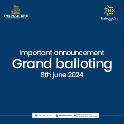 Excitement is in the air as the date for the Grand Balloting of Hateem City Lahore approaches! Scheduled for June 8th, 2024, this highly anticipated event offers prospective homeowners and investors a unique opportunity to secure a spot in one of Lahore’s premier living destinations. Don’t miss your chance to be part of this prestigious community and take the first step toward owning your dream home.