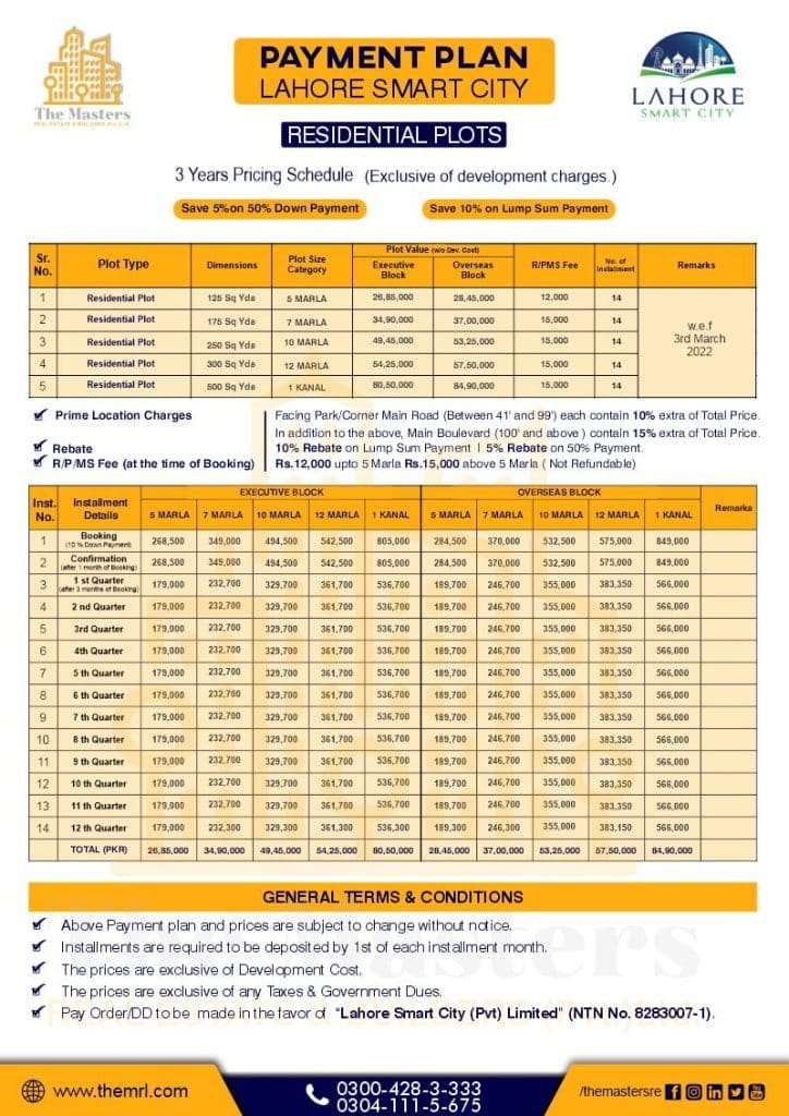The Masters Real Estate & Builders is the strategic and platinum sales partner of Lahore Smart City. If youre looking for Lahore Smart City booking procedures, youve come to the right place.