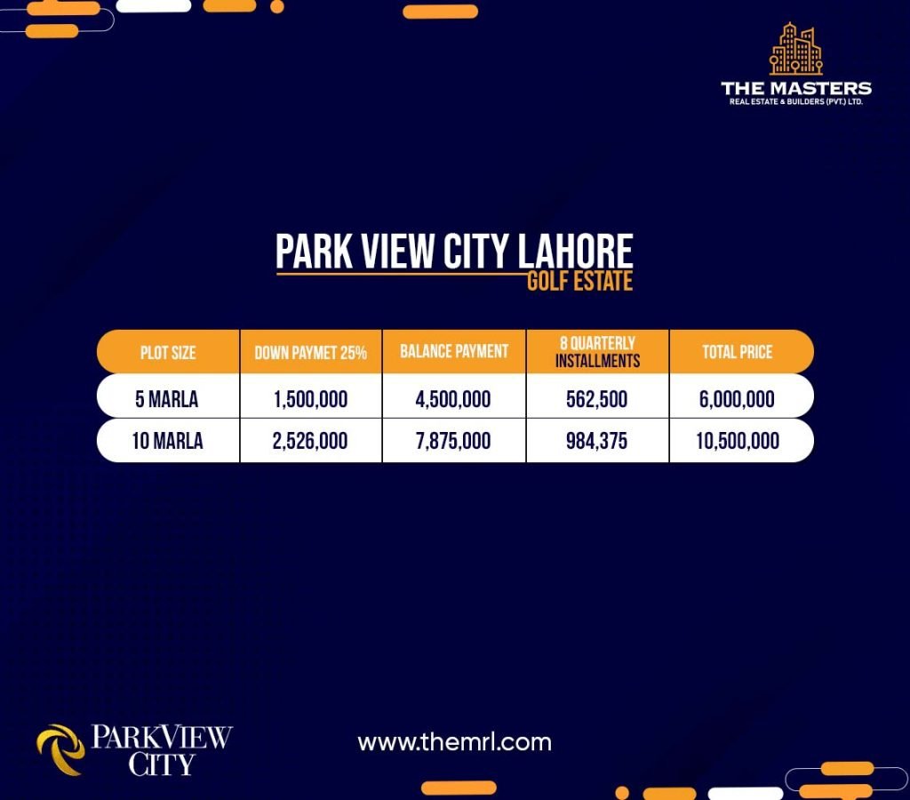 Moving on, the following plot sizes are available in the Park View City Lahore Golf Estate Block: