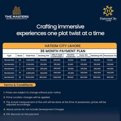 Whether you are looking to buy your first home, upgrade to a more luxurious lifestyle, or make a savvy investment, Hateem City Lahore offers the perfect solution. Explore the flexible payment plans and discover how you can unlock the door to your dream home today.